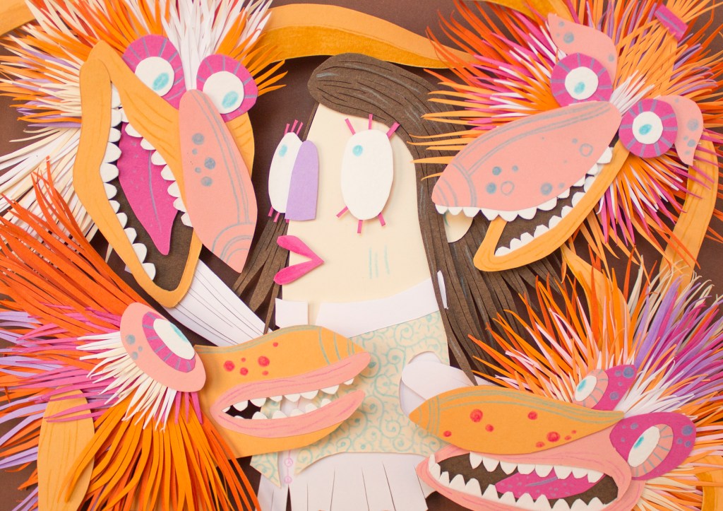 Las ilustraciones infantiles están centradas en dos escenas muy icónicas del filme. Realizadas una de ellas con técnica del papercut y la otra en digital.
